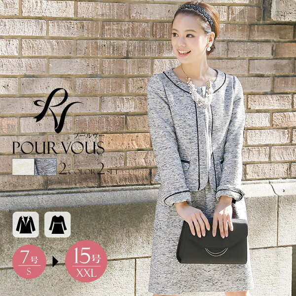 カラーごとに生地までこだわった上品スーツ! ------------------------------------------------------------ 人気のノーカラージャケットとワンピースのセットスーツ。